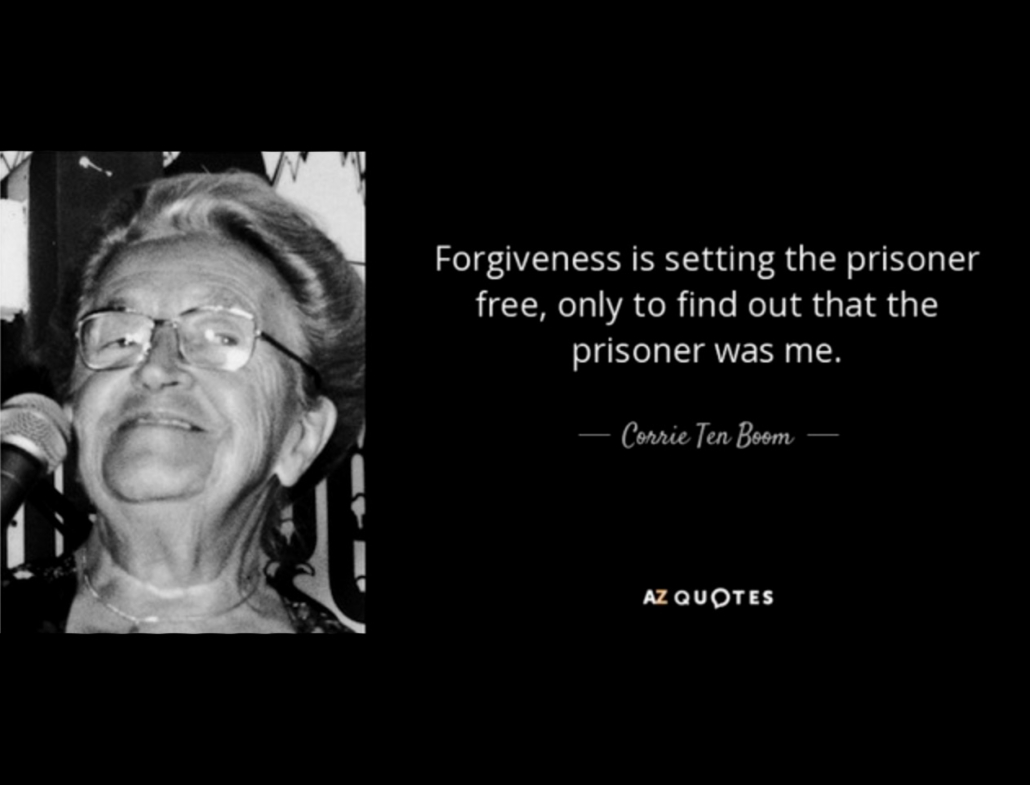 A great example of this is Corrie Ten Boom. Corrie and her family hid Jews in Holland during WWII. They were eventually arrested and sent to a concentration camp. Corrie lost her father and sister in the camps. After the war one of the prison guards came up to her after a meeting and asked for her forgiveness. She realized she had not fully forgiven this guard that had been so cruel to her family, but with the Lord’s help she was able to forgive them.